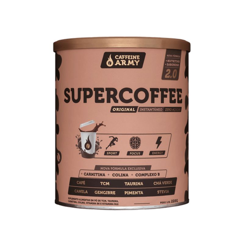 Super Coffee da Caffeine Army é uma ótima opção para os amantes de café. Ele traz energia com ingredientes selecionados para consumo diário, ele contém canela, mix de chá verde, gengibre e pimenta, que são composições naturais que proporcionam o aumento da queima de gordura. Sendo e pó solúvel, Super Coffee fica pronto em apenas 15 segundos.